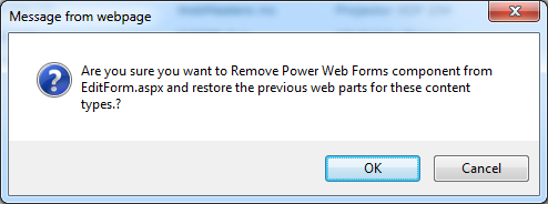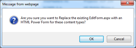 Pressing on the above selection will cause the appearance of a confirmation box. Selecting OK will register PowerForms HTML for use.