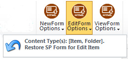 To unregister PowerForms HTML and use the default Sharepoint Page again, simply click on the same button on the ribbon bar. The selection informs you that the default Sharepoint form will be used again.