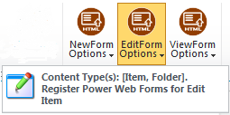 | | Will replace the default Edit Item form with a PowerForms HTML form. |