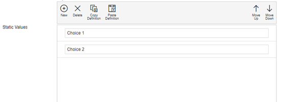 - You can add a new row or delete the selected one in the static data source, using the “New” and “Delete” buttons respectively.